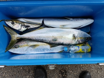 釣行日 4月14日11:00~16:00 | 同行者 急遽出航を決めたのて゛一人 釣果 マアジ 8尾 キジハタ 4尾 クロソイ 2尾 カサゴ 6尾 マサバ 1尾 マアジが食べたくて、片テンビンビシ仕掛けで釣ることに。 ポイントに到着、暫く後入れ食いになりましたが、じきに釣れなくなってしまいました。 で、沖に出てインチクで根魚狙い、0.9㎏のキジハタを頭にそこそこの釣果を得ることができました。 ![]() 本日の釣果 ![]() インチクと0.9㎏のキジハタ ![]() 今晩の夕食はアジのたたき ![]() アジのお刺身も調理