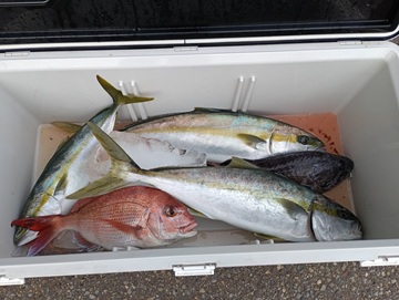 釣行日 5月13日4:50~11:30 | 同行者 ごいちゃん 釣果 二人でマダイ8尾 約 1~3㎏ お土産にはちょうど良い釣果でした。凪にぽかぽか天気と今日は最高の釣り日和でした。 ![]() ごいちゃんに大物がヒット ![]() 無事釣上げました ![]() 二人の釣果は4尾づつ