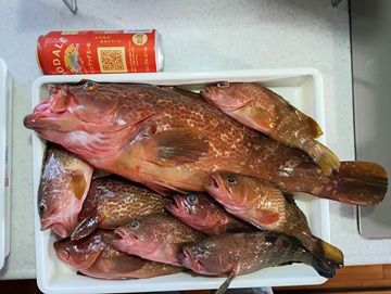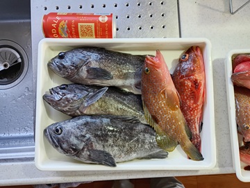 釣行日 9月9日5:30~10:00 | 同行者 一人での出航 釣果 マアジ × アカイカ × マダコ × キジハタ 5尾 クロソイ 1尾 曇りの予報だったので、少しは涼しいかと出航してみることに。 9時頃までは快適だったものの、暫くして雲が無くなりカンカン照りに、暑くて魚釣りどころでは無くなったため帰港。 ![]() 水温が高すぎるのか? 水深の浅い所では釣れず、ちょっと深めで釣れました。 ![]() ウロコを落としエラと内臓を取り除き下ごしらえ、クロソイは2晩、キジハタは4晩ほど経過しないと身に旨味が出てこないので、時が来るまで冷蔵庫にて保管してから頂きます。
