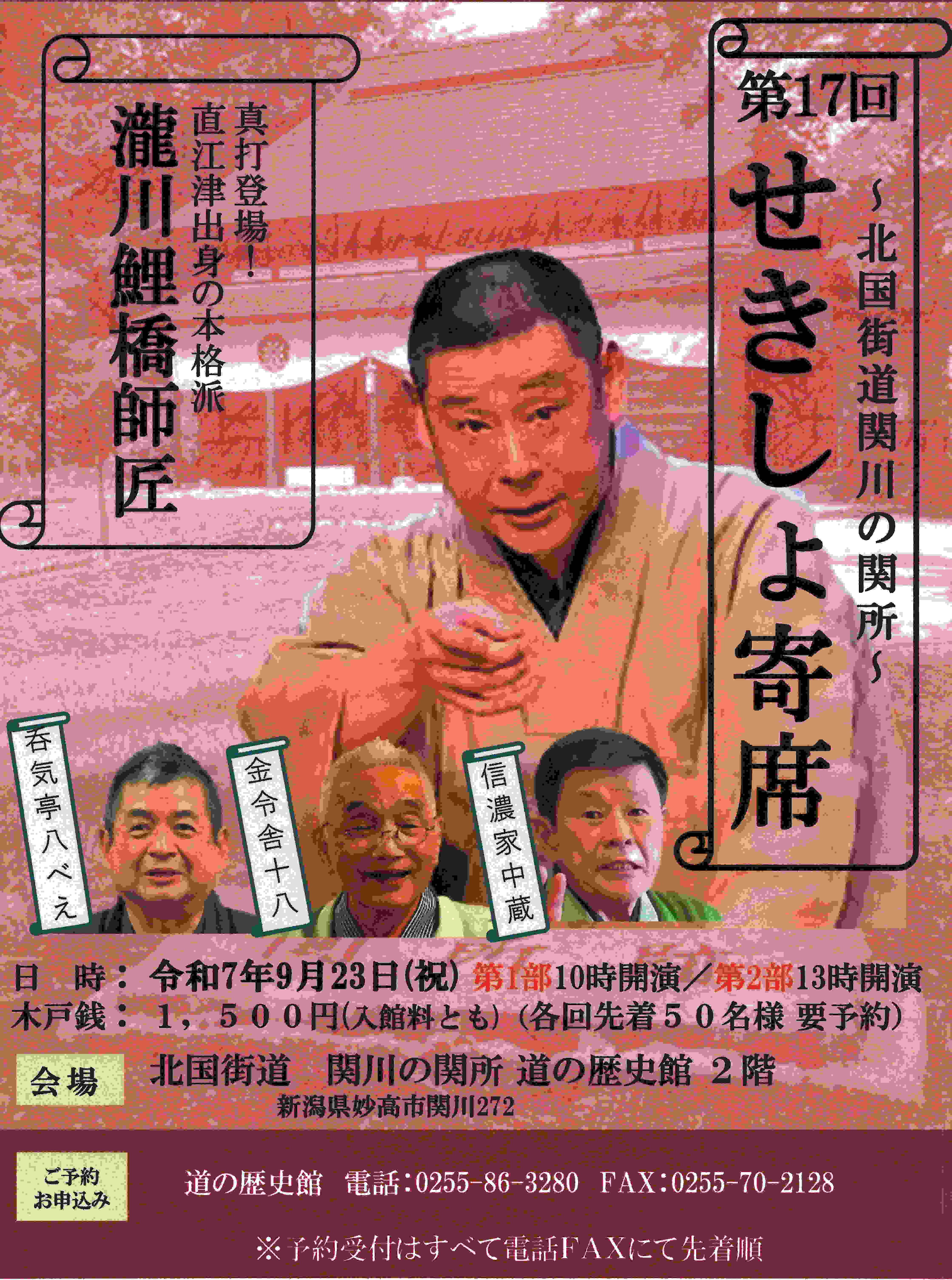 9月23日(火) 第17回 せきしょ寄席 完売です |