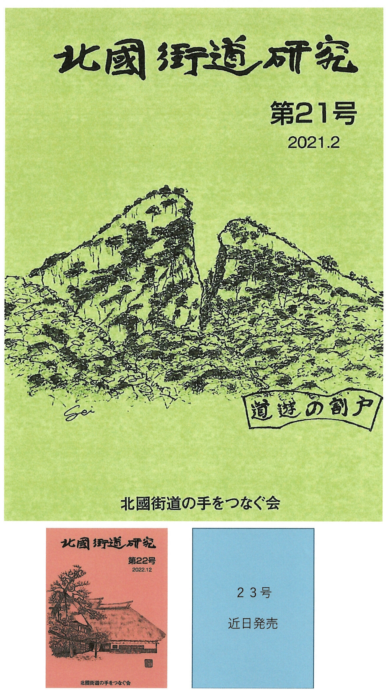 ![]() ![]() ![]() 北國街道研究 第23号 2025年1月発売しました。 北國街道の手をつなぐ会 ← 詳細は北國街道研究会ホームページをご覧ください |
