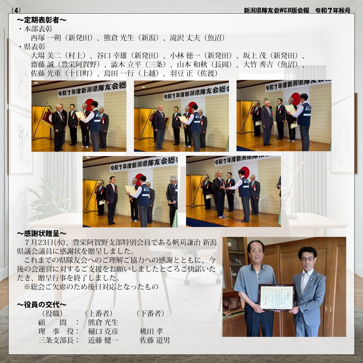 ● 感謝状(1名)豊栄阿賀野支部特別会員 帆苅謙治様