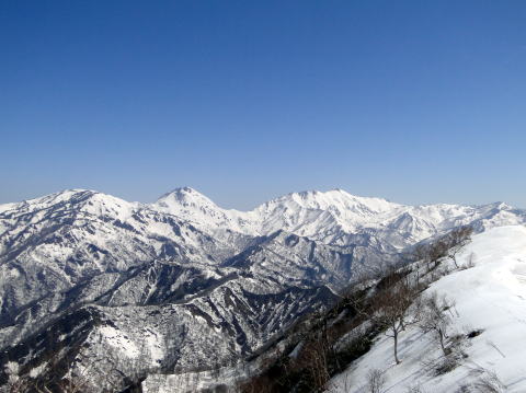 | 堂津岳山頂 後方は金山、焼山、火打山、妙高山 |