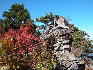 12:33. 権現岳着。 先ほどまでいた登山者はもういなかった。鉾ヶ岳・金冠がよく見える。 12:45. 山頂発。 痩せ尾根が続く。 13:05. 白山権現。 13:15. 天狗屋敷。 天狗屋敷から尾根を離れるが、傾斜が急なことには変わりはない。胎内洞の手前で6、7人のグループに追い付いて先に行く。 13:25. 胎内洞を抜ける。 13:42. わらじ脱ぎ場。 この下までロープの連続だった。 14:05. 登山口着。 湯沢川沿いの道を下る。 14:40. 柵口の「山水館」前に出る。 |