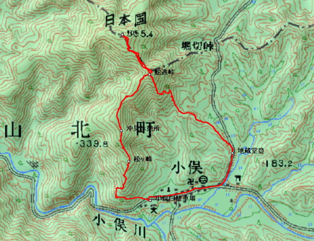 小俣口登山口−松ヶ峰広場−沖見休憩所−蛇逃峠−日本国−蛇逃峠− |