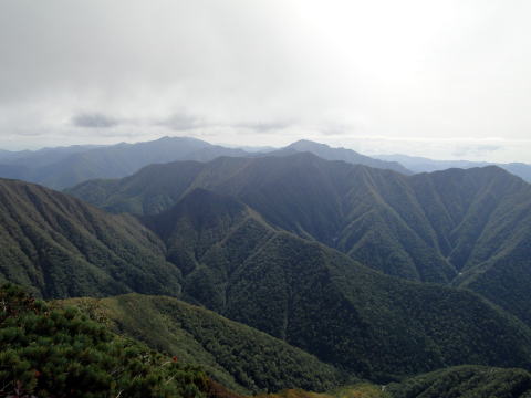 | 山頂から中ノ岳、神威岳 |