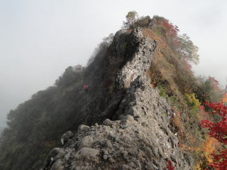 | 10月11日(月) 6:10. 鏡池駐車場発 6:33. 分岐 7:05. 天狗平、 5分休憩 7:55. 小ピーク、 5分休憩 8:30. 大岩、鎖場 8:45. 10分休憩 9:10. 熊の遊び場 9:35. 5分休憩 10:10. 無念の峰 10:55. P1弁慶岳、10分休憩 11:45. 戸隠西岳山頂着 |