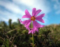 | 5:05.ヒサゴ沼避難小屋発。 ヒサゴ沼分岐への登りで来るときに気付かなかったが、キバナシャクナゲがきれいに咲いていた。エゾコザクラ、エゾツガザクラ、アオノツガザクラの群落が素晴らしい。 5:55.ヒサゴ沼分岐。 緩やかな気持ちのよい道を登る。 6:05.化雲岳着。 南には昨日登ったトムラウシが、北には旭岳がくっきりと見えた。 6:15.発。 化雲岳の近くでは、崖になって切れ落ちている尾根の北端に沿って進むが、次第に広い尾根の真ん中の道となる。砂礫地には、コマクサの群落がいくつかの場所で見られ、風衝地では、タカネシオガマ、メアカンキンバイ、イワギキョウ、ミヤマリンドウ、エゾヒメクワガタ、エゾツツジなどが咲いていた。 下ってくると、ヨツバシオガマ、ミヤマオグルマ。さらに下ってくると、エゾコザクラ、アオノツガザクラ、チングルマの群落が現れる。 ポン沼辺りまでは本当に気持ちよく歩ける。妻がいたら、どんなに喜ぶだろうかと思った。 7:20.ポン沼。 |